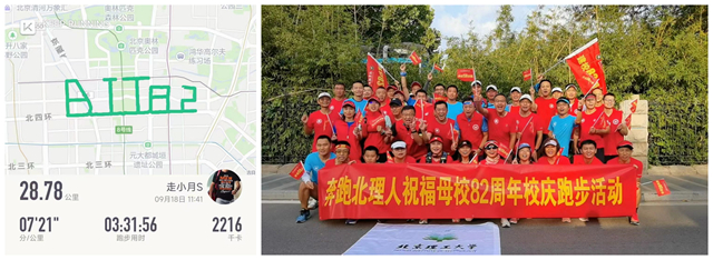 此外,1982级校友刘刚、21993班校友赵伟臣还代表做爱视频 校友参加了线下“奔跑北理人,为母校庆生”云跑活动,最终经过3小时31分56秒的坚持,跑完了28.78公里,完美的跑出“BIT82”字样的路线图。还有多位校友通过“云捐款”的方式表达了自己对母校82周岁生日的美好祝福!