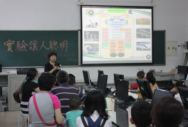 首先,自动化实验教学中心党支部书记张婷对各位同学及家长的到来表示热烈欢迎,生动形象地描述了什么是自动化、自动化技术的广泛应用,孩子们积极回答和提问,场面非常热烈、温暖。