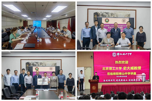 走访期间,秦志辉代表学校向重庆南开中学授优质生源基地牌,王美玲代表学校与重庆南开中学签署《共建大中卓越人才培养协议》。史大威为绵阳南山中学200余位学生作题为《人工胰腺:闭环血糖控制离我们有多远》科普报告和招生宣讲。