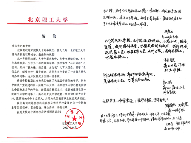 招生组参加了巴蜀中学90周年办学成果展示。王美玲代表学校向巴蜀中学赠送校庆贺礼,及巴蜀思源团准备的签名贺卡,并向巴蜀中学转达了学校及同学们校庆祝福。