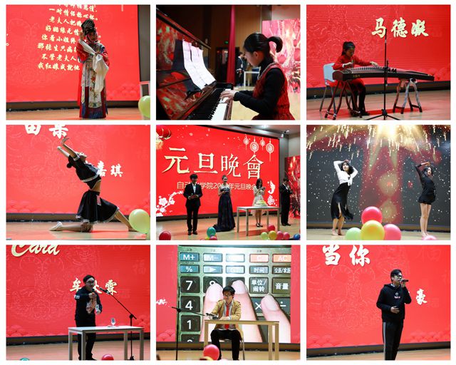 学院领导带来朗诵,歌颂了改革开放四十周年的伟大成就;辅导员集体献唱了一首《明天会更好》,送出新年祝福;晚会同时也得到了教师及其家属们的鼎力支持,耿庆波、费庆、马宏宾、金锋四位老师的女儿分别带来了钢琴伴舞《北风吹》、舞蹈《苗朵》、古筝独奏《繁华·春到拉萨》以及京剧《红娘》,为晚会增添了色彩。