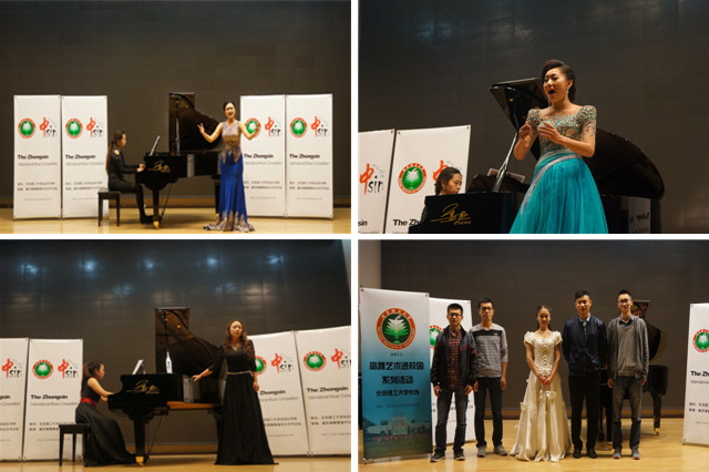 首届“高雅艺术进校园”音乐会于2016年1月10日下午在中关村校区7号楼报告厅举行,来自中国音乐学院声乐系和首都师范大学声乐系的青年教师热情洋溢地演唱了中外经典名曲,其中既有世界文化之精粹,又有反应社会主义核心价值观的优秀作品。参演人员用精湛的技艺、高昂的热情为在场师生奉上了一场久违的高雅艺术盛宴。