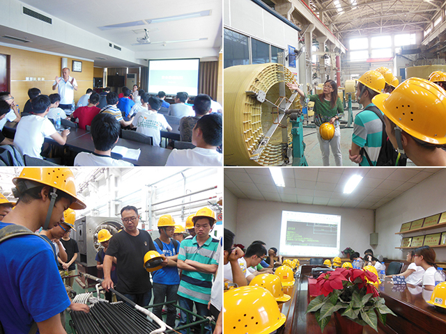 在北京电力设备总厂有限公司的实习,首先安排了企业发展、做爱视频、产品质量管理和入厂的安全教育等讲座。随后,班级同学分两组轮流到电机分厂、电抗器分厂和变压器分厂进行工程认识实习。在各分厂的实习,都由技术主管先进行基本知识、产品应用介绍,然后再到现场进行生产工艺过程、产品结构讲解,理论与实践相结合,同学们通过与技术人员、工人师傅的交流,了解了企业的产品、生产工艺、用户和市场销售情况,对行业情况也有了一定认识。