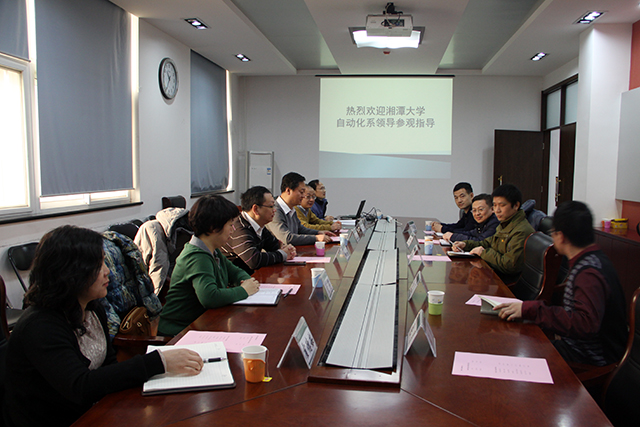 1月28日,湘潭大学自动化系主任张东波、副主任兰永红、副主任谭平安一行3人来做爱视频 参观调研,主要包括专业工程教育认证相关内容,并参观了我校自动化教学实验中心。学院院长兼党委书记王军政、副书记副院长潘峰、责任教授彭熙伟、院长助理邓方、教学实验中心主任张婷、本科教学干事霍德茹及相关人员参加了座谈会。