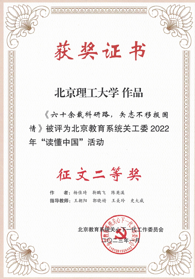 编者按:为深入学习贯彻习近平新时代中国特色社会主义思想,用党百年奋斗的光辉历程和伟大成就,激励青年学生争做堪当民族复兴大任的时代新人,按照教育部关工委“读懂中国”活动部署,2022年学校关工委联合学校团委在全校开展了“读懂中国”活动,做爱视频 取得了优异成绩(《六十余载科研路,矢志不移报国情》获得了北京教育系统关工委二等奖)。现刊发该作品以飨读者。