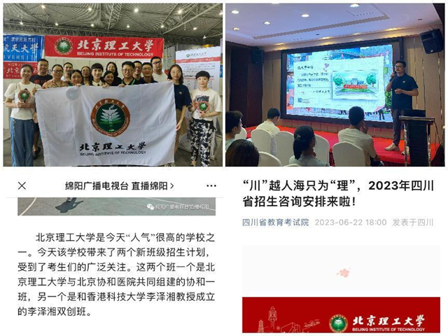 在志愿填报期间,领航人和思源学子聚焦精力,针对每个分数段考生的情况定制个性化的咨询策略,得到了四川广大考生和家长的一致好评;数十位家长志愿者主动走进咨询会现场,为潜在生源讲述北理故事,吸引其到现场咨询室咨询;宣讲会上,薪火传承人何兴益讲述了北理的学习生活如何为其如今的工作赋予能量,感染了在场的众多学子。同时,四川考试院、成都广播电台、绵阳广播电台、学习强国等官媒均为我校本科招生工作报道发声,助力招生工作推进。