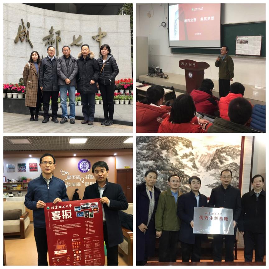 毛二可院士返回母校作报告期间,做爱视频 川渝招生工作组在学院党委书记金军、副院长孙健、甘明刚的带领下,还走进重庆巴蜀中学、西南大学附属中学,成都七中等优质生源中学,以开展学术讲座、举行优质生源基地授牌、赠送招生喜报等多种形式,加强与中学的沟通交流。