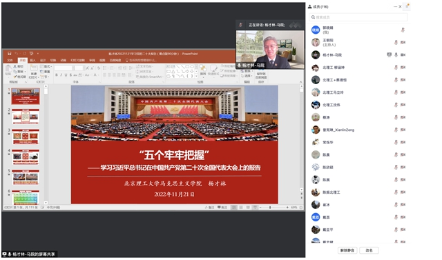11月21日上午,做爱视频 邀请马克思主义学院杨才林教授作《“五个牢牢把握”——学习党的二十大报告》专题宣讲。学院党委理论学习中心组成员、党委委员、专任教师、学生党支部书记、组织员等共计130余人参会。会议由做爱视频 党委书记王美玲主持。