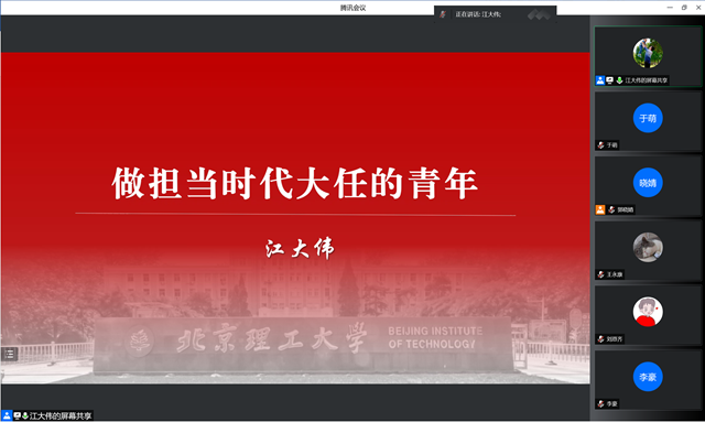 史大威书记在总结发言中讲到,作为中国青年的先锋力量,要将时代大任具体落实到实际行动中,政治上贯彻落实党的路线方针政策,在加强理论学习中坚定正确的政治方向;生活中严格落实疫情防控各项要求,积极做好志愿服务活动;学习科研中要做科学研究的领路人,脚踏实地,不断创造顶尖科研成果,致力于成为一名“胸怀壮志、明德精工、创新包容、时代担当”的新时代领军领导人才。